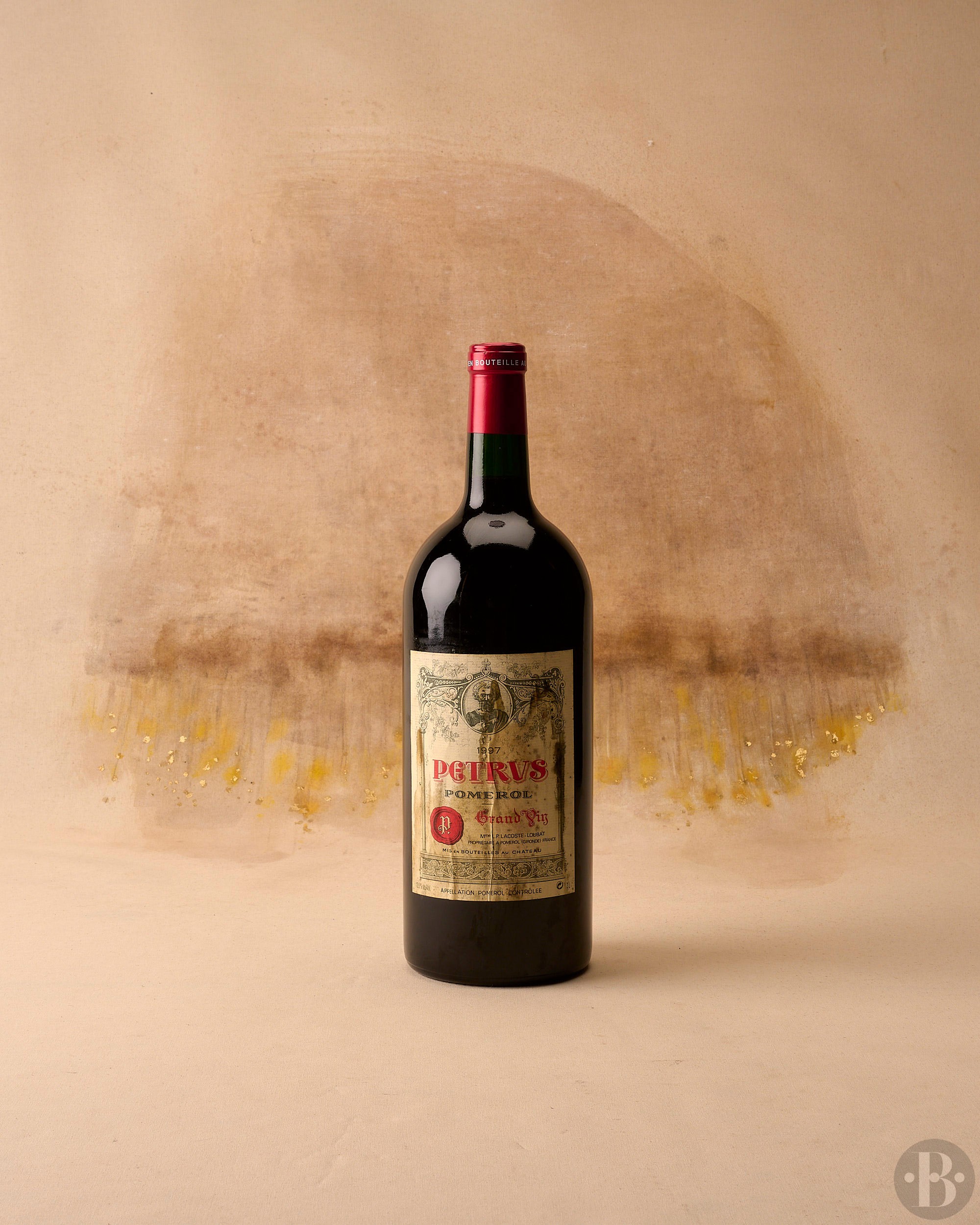 Damp-stained and marked label. Level into-neck.