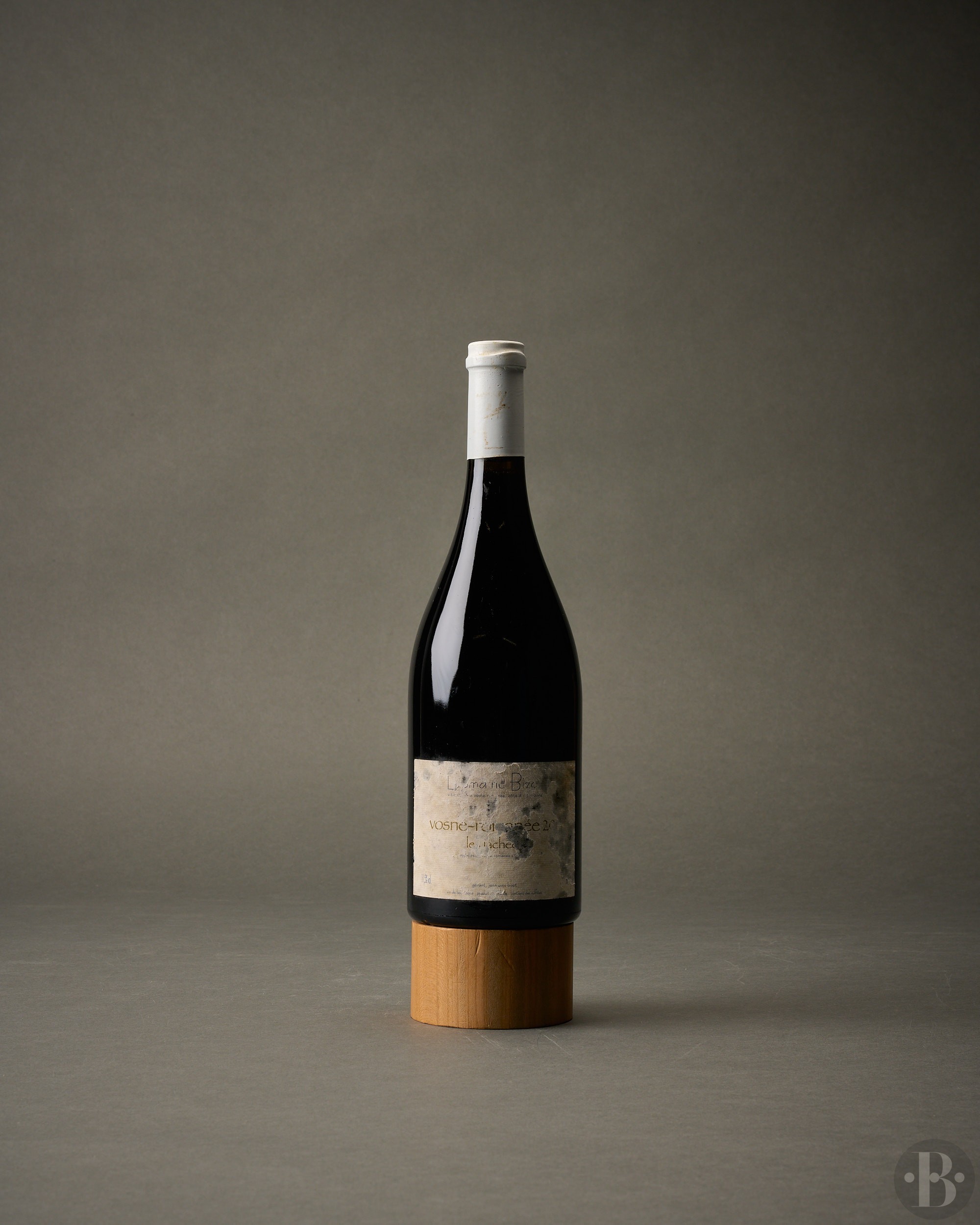 Stained capsule. Damaged, damp-stained and nicked label. Vintage legible on back label. Very good level.