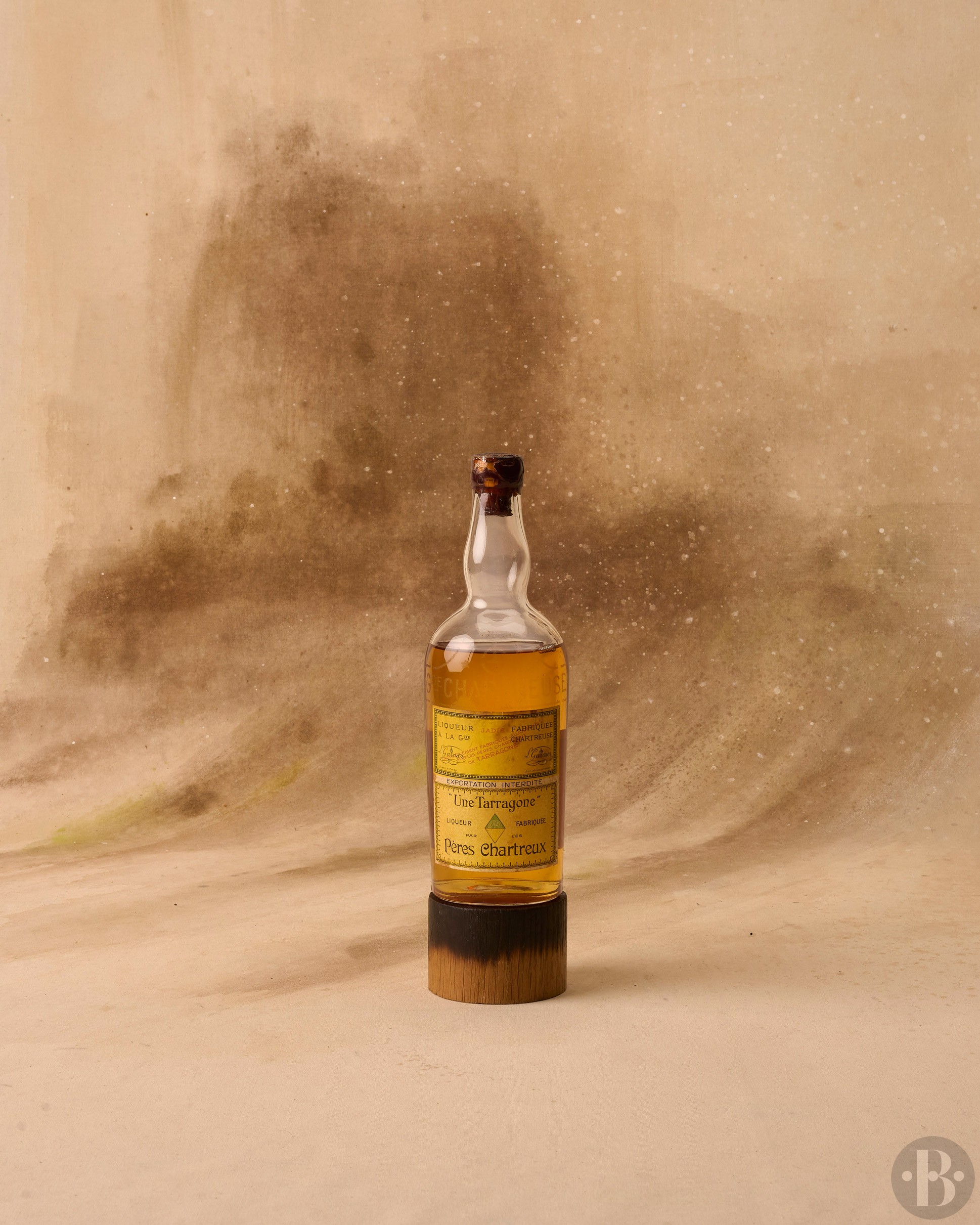 Damaged wax capsule. Cork ok. Slightly stained and marked labels. Level in the upper part of the engraved globe.