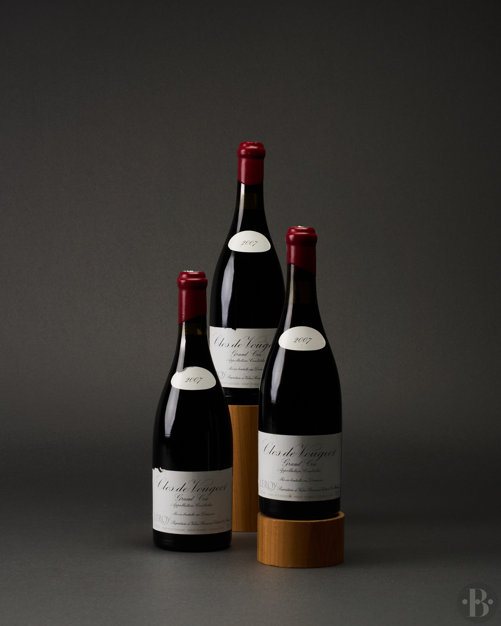 One damaged wax capsule, one with old signs of seepage. One torn vintage slip label, one slightly torn and one slightly nicked labels. Three slightly marked labels. One slightly marked back label Levels: one at 1,5cms, one at 2cms and one at 2,5cms below base of corks.