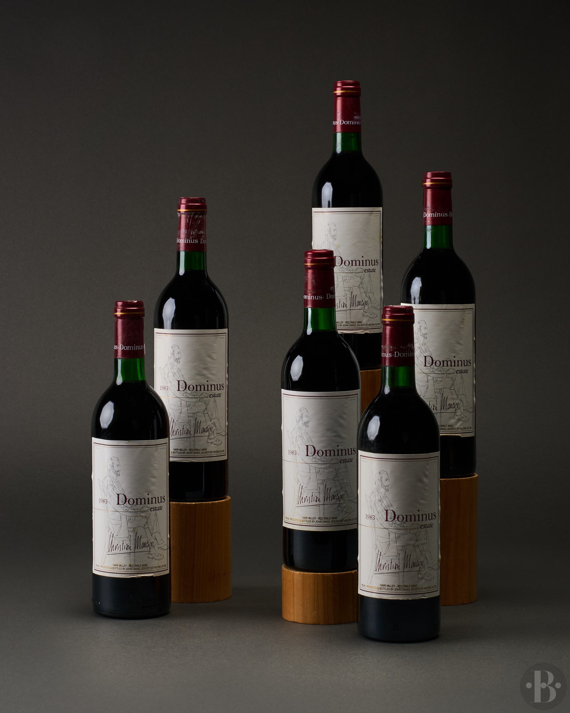 First vintage produced. Slightly corroded capsules. Very good appearance. Slightly marked labels. Levels base of neck.