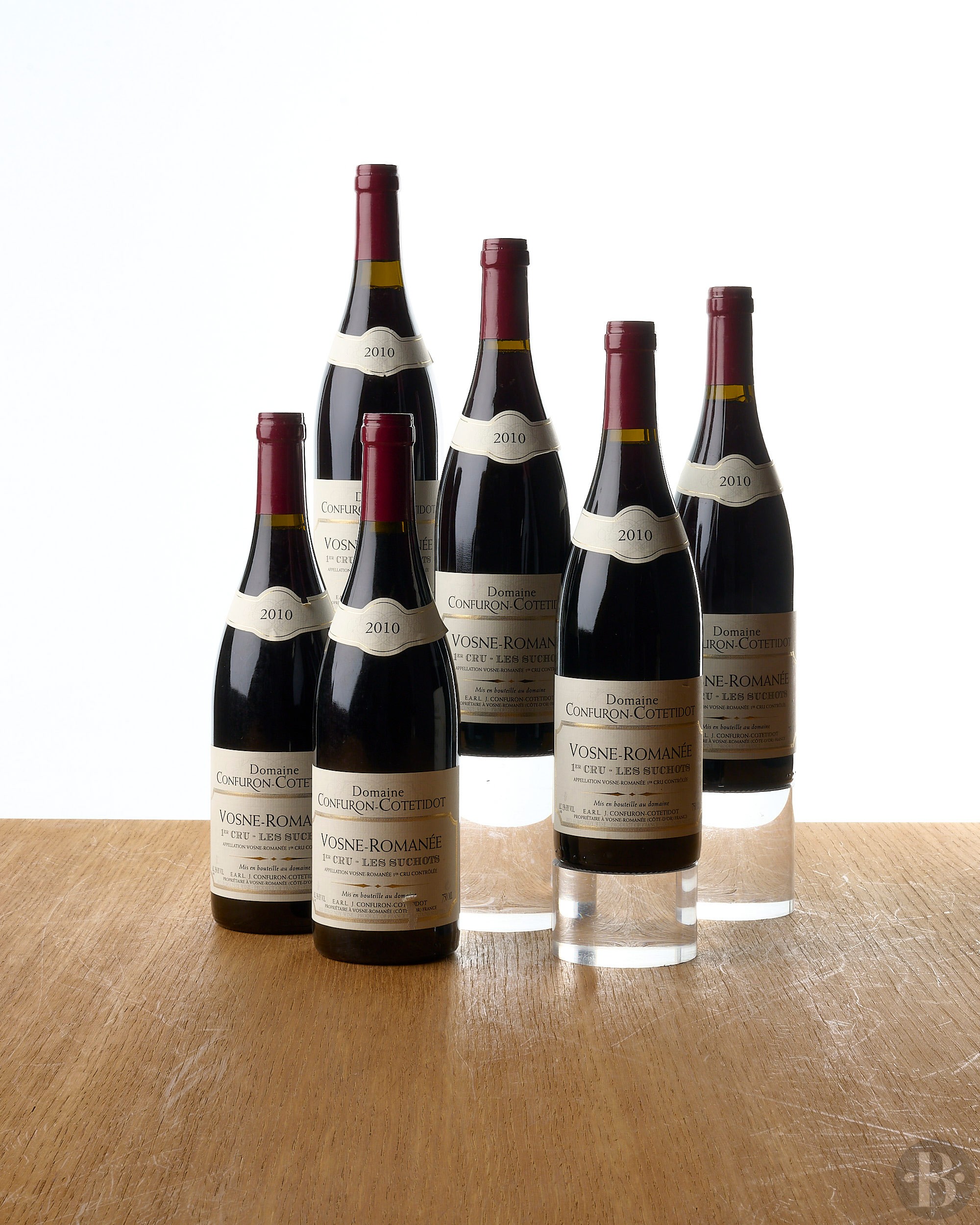 Three very slightly nicked slips. Two very slightly nicked labels. Two very slightly stained. Levels: one at 1,8cm below base of capsule, the others at 0,8cm or better below base of capsule.
