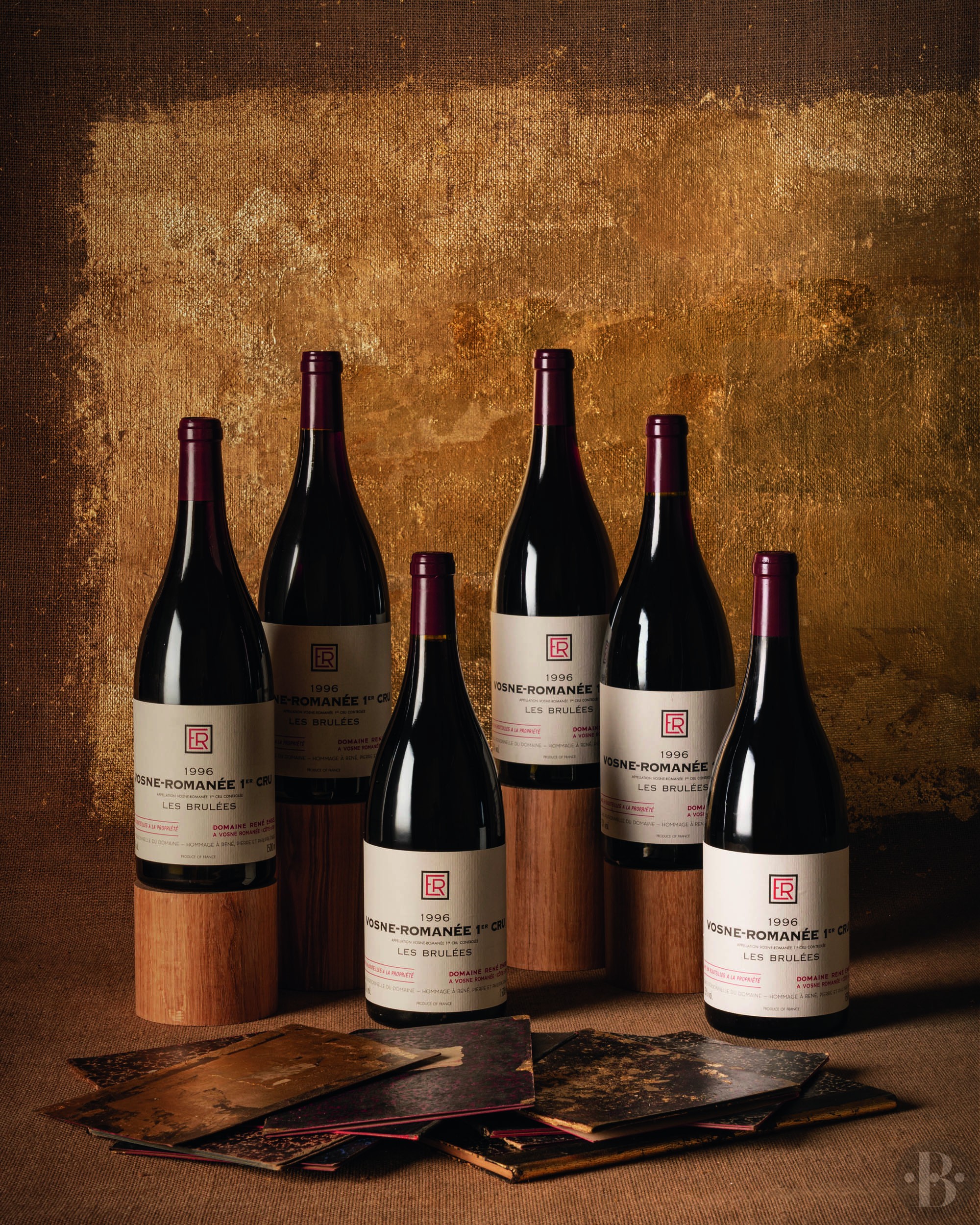 Capsules et étiquettes de la vente Baghera/Wines "Domaine René Engel, The Trilogy" du 16 juin 2019. Pour cette vente exceptionnelle, les vins ont été enlevés des caves du Domaine René Engel en début d'année 2019 et transportés directement aux Ports Francs de Genève. Les vins n'ont jamais quitté la cave de stockage de Baghera aux Ports Francs de Genève depuis lors.