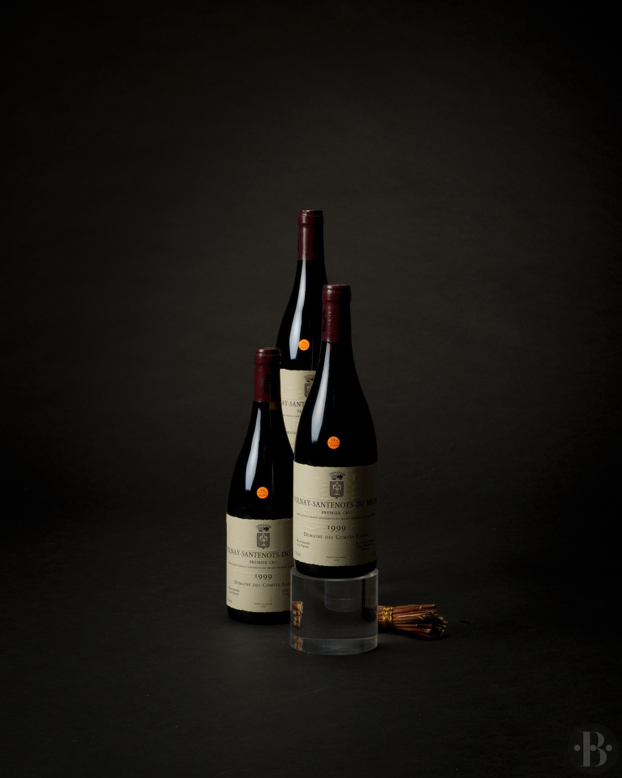 Une étiquette très légèrement tachée. Niveaux à 1,2 cm. Sou mieux sous la base des capsules.