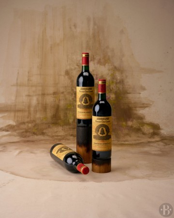 Etiquettes légèrement tachées. Niveaux dans le goulot.