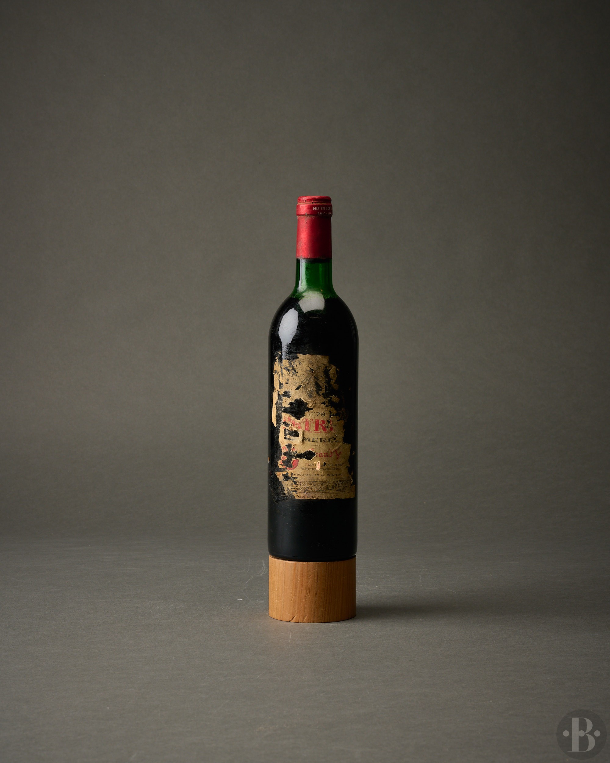Capsule légèrement corrodée. Partie de l'étiquette restante, millésime lisible. Niveau haut de l'épaule.