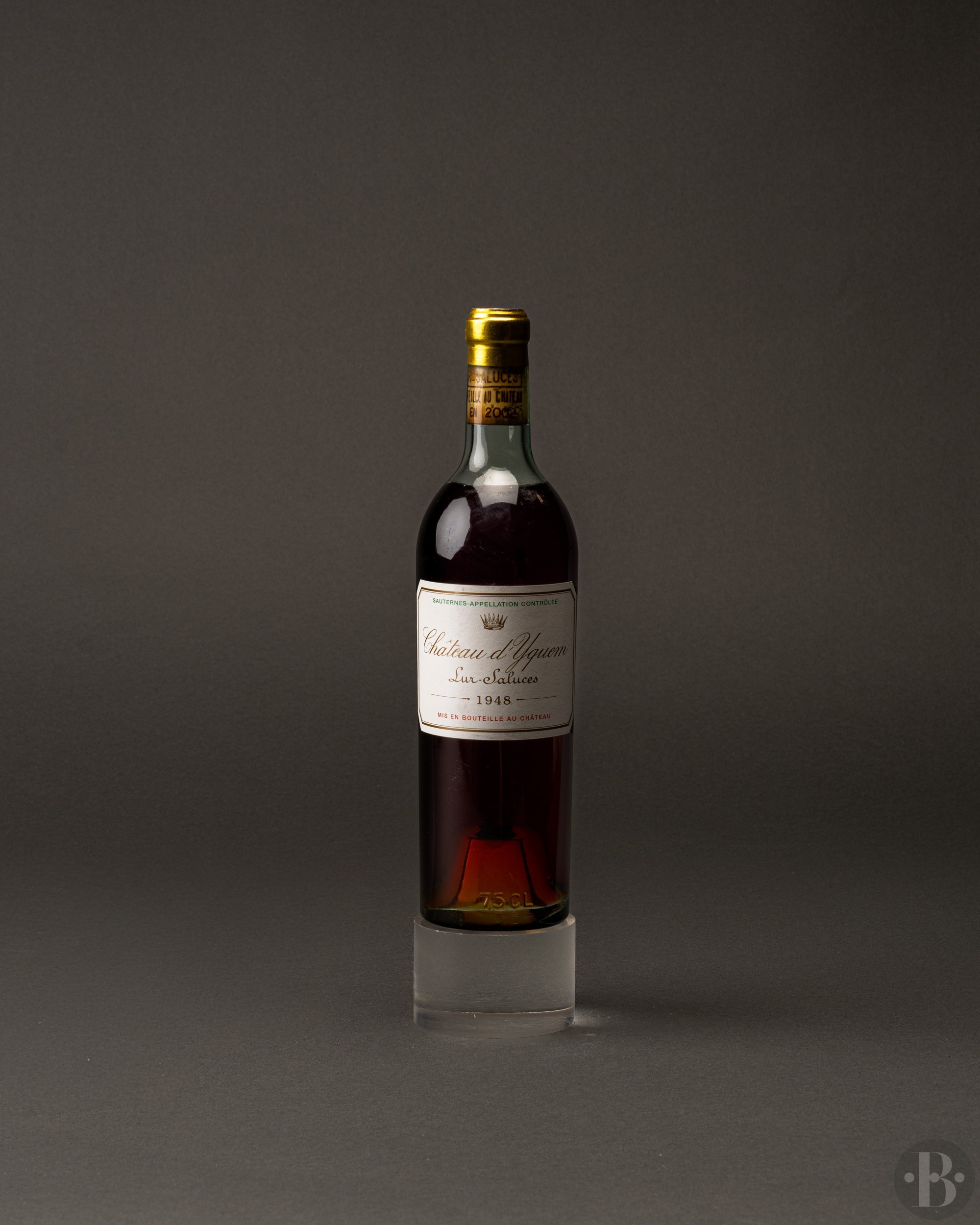 Very good appearance. Level at top-shoulder. Recorked in 2002.