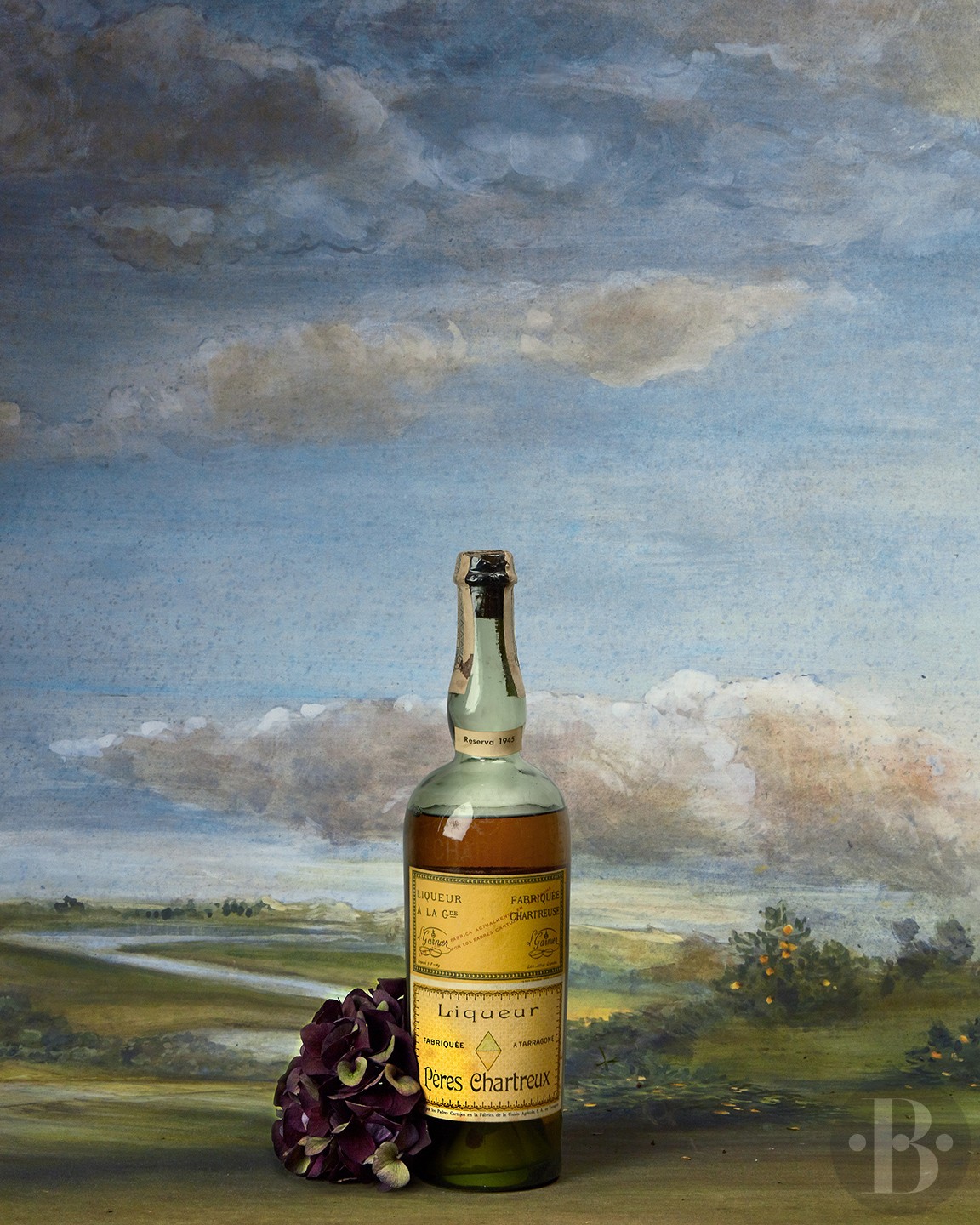 Bouteille en verre soufflé. Gravure sablée. Restes de bande fiscale espagnole sur une capsule de cire en bon état. Bouchon court en bon état. Collerette "Reserva 1945" sur le goulot. Etiquette légèrement marquée. Contre-étiquette “Pruebe nuestro Brandy-Car “Tarragonesa". Niveau à 10 cm. sous la base du bouchon.