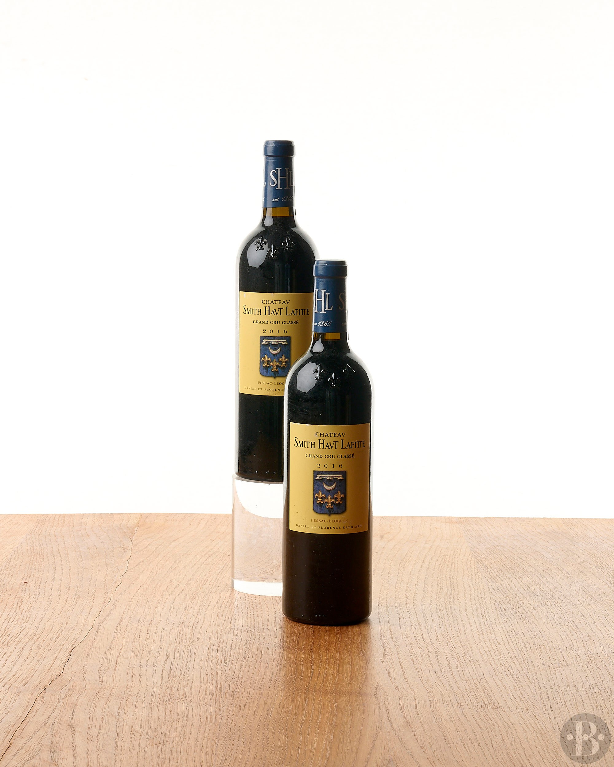 Étiquettes très légèrement salies et griffées. Niveaux dans le col.