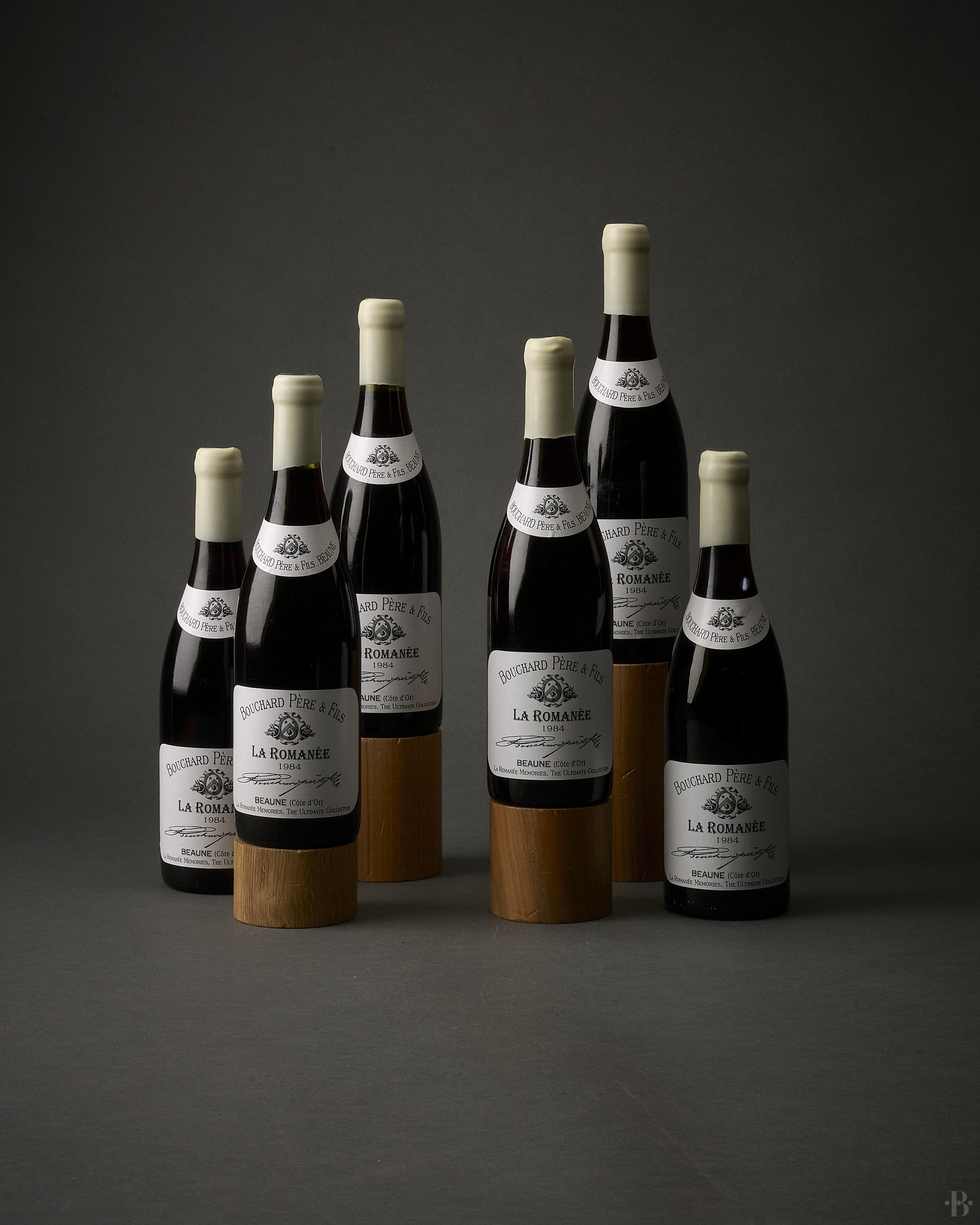 Conservée sur pile dans les caves historiques de Bouchard Père & Fils. Chaque flacon a été goûté, noté et rebouché en 2020. Nouvelles capsules de cire et nouvelles étiquettes d'inspiration anciennes mais spécifiquement réalisées pour cette vente. État de conservation parfait. Prooftags "La Romanée Memories"